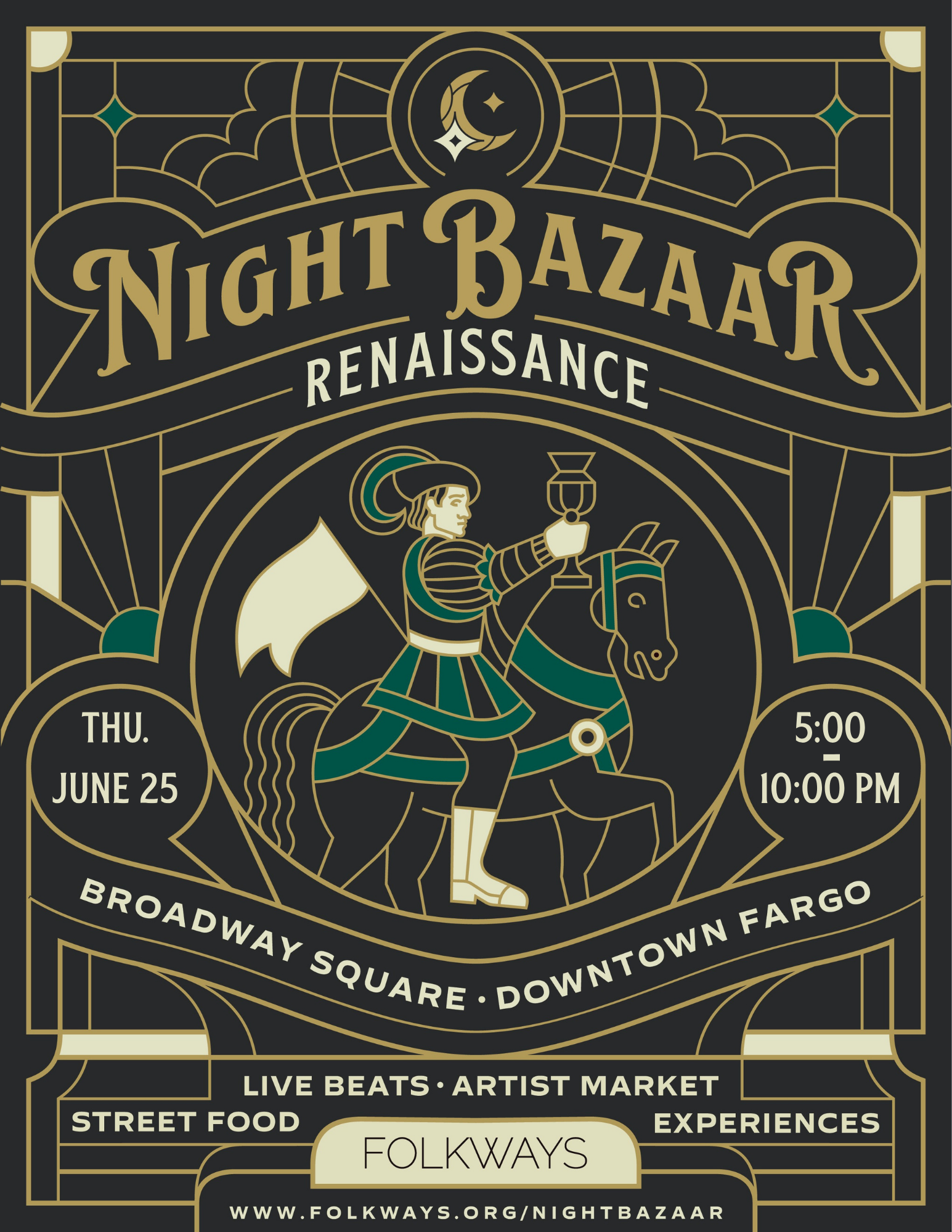 Immerse yourself in an enchanting night filled with food, music, art, and performances. Shop local artists, makers, and vintage shops. Enjoy Renaissance-themed entertainment and activities.