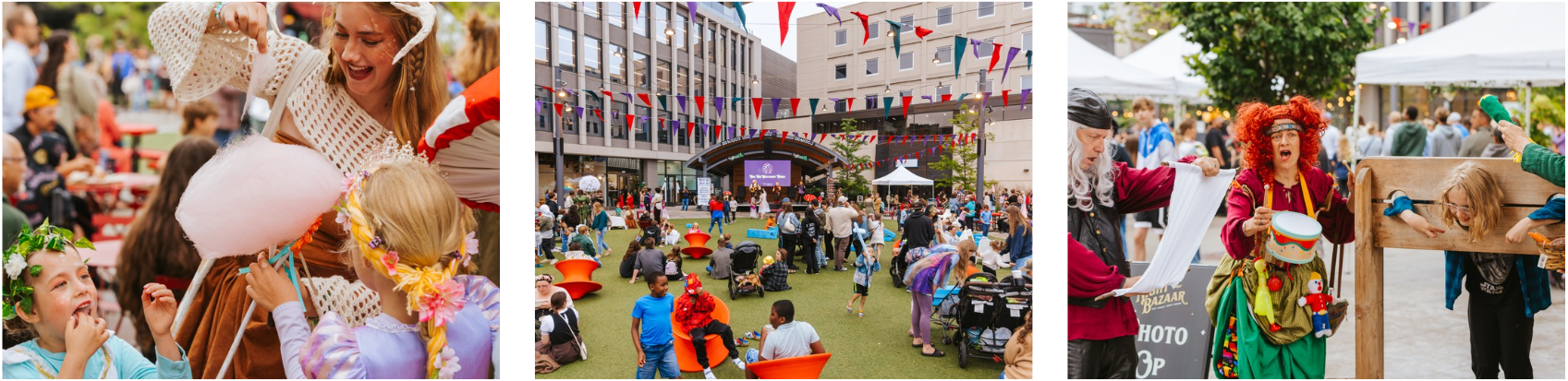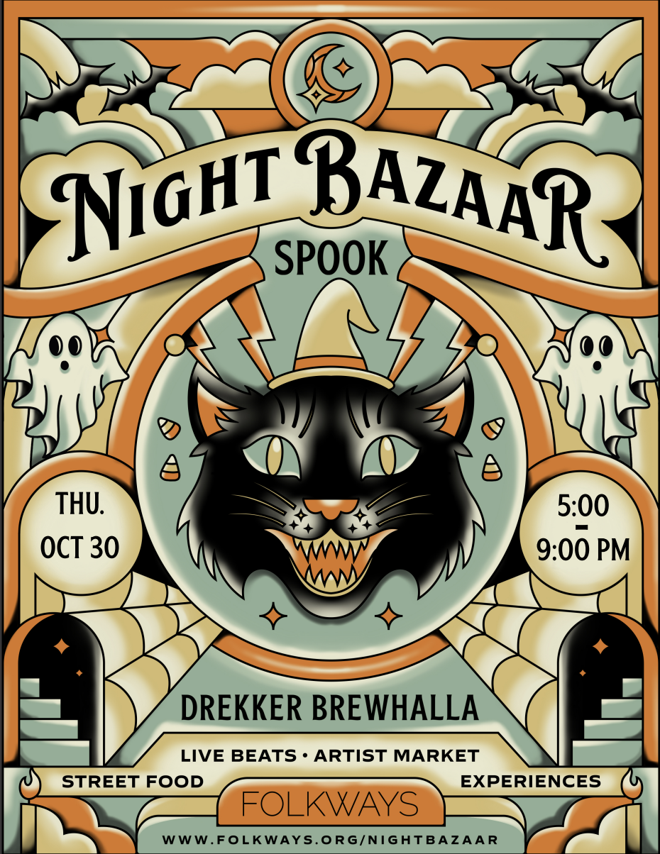 Night Bazaar is a series of themed street carnivals blending live music, curated entertainment, immersive experiences, and an artist market, inviting the community to dress up and embrace wonder and whimsy.