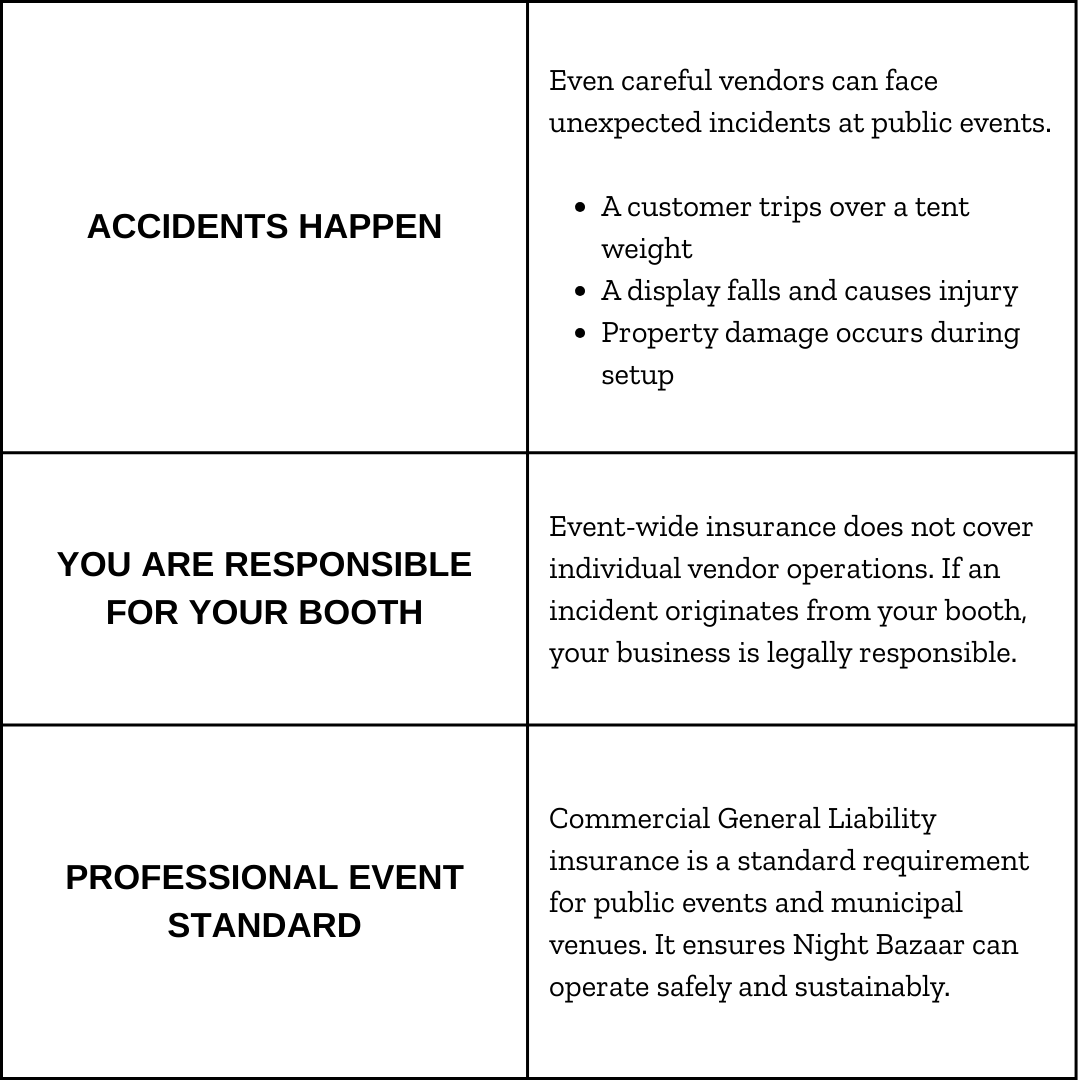 Night Bazaar reserves the right to enforce policies as needed to maintain a safe, equitable, and professionally operated event.